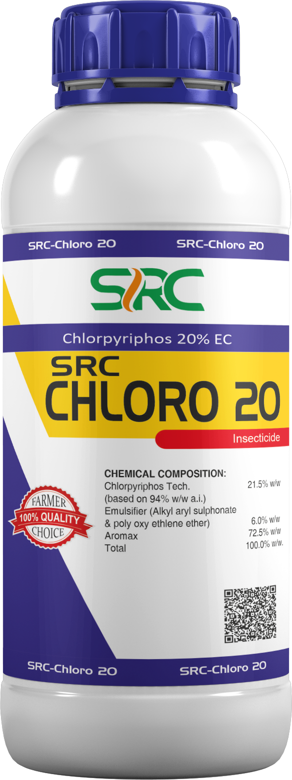 Chlorpyriphos 20% EC it is recommended to control hispa, leaf roller, gall midge, stem borer of paddy, aphid, bollworms, whitefly & cutworm of cotton and insects of vegetables, fruits and to control termite in building, wood and seed treatment & soil treatment.