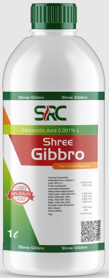Gibberellic Acid 0.001 % L Shree gibbro is a Plant Growth Regulator Gibberellic Acid 0.001 % Liquid which is usedTo increase the growth and