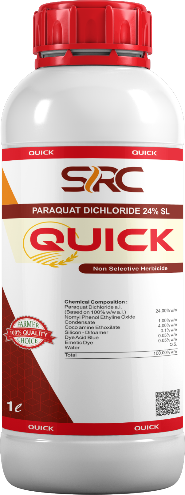 Quick Paraquat Dichloride 24% SL is broad spectrum, non selective & contact herbicide containing 24% Paraquat dichloride A.I which effectively controls broadleaved weeds & grasses. During photosynthesis superoxide generated, which damages cell membranes and cytoplasm